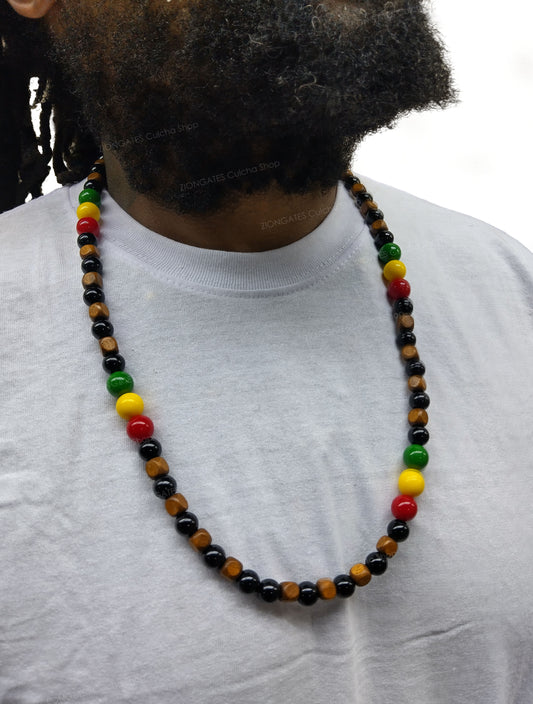 Wooden Beaded Necklace - Red Yellow and Green - Rasta