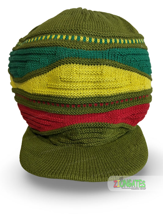 Medium Light Olive green Rasta Crown AKA Rasta Hats Tams Dread locks cap - RH059-5RYG