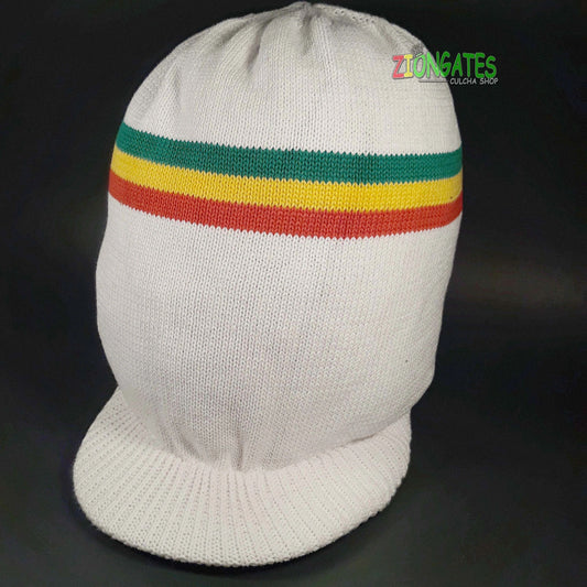 rh055-6 RYG Xlarge WHITE Rastafarian Crown AKA rasta hats tams dread caps xlarge
