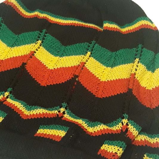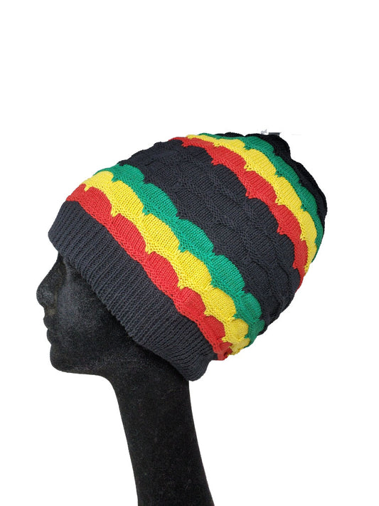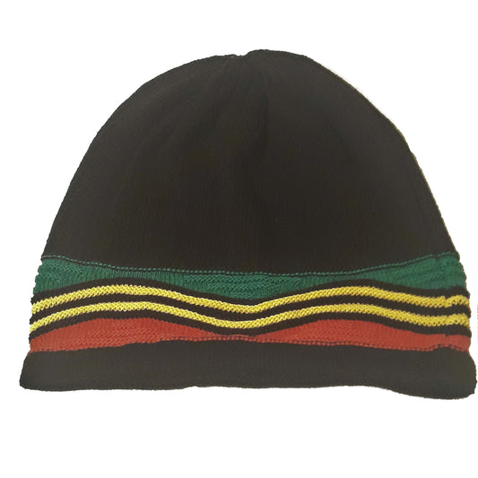 RH067 Large Black Rasta Dreadlocks cap with Red Yellow Green stripes - no visor