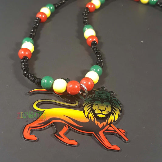 Lion of Judah Beaded Necklace - Rasta - LNE-15A