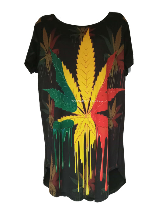WOMENS 420 Ganja Stretch SHIRT - Black - Rasta