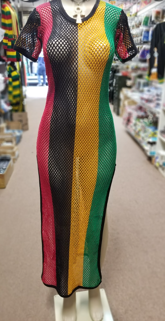Womens Rasta Mesh Dress - Rihanna Fishnet beach cover up