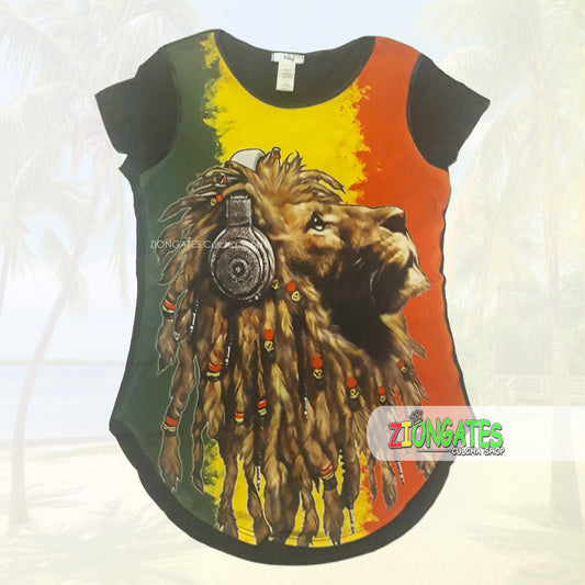 WOMENS RASTA Lion with headphones Spandex Shirt