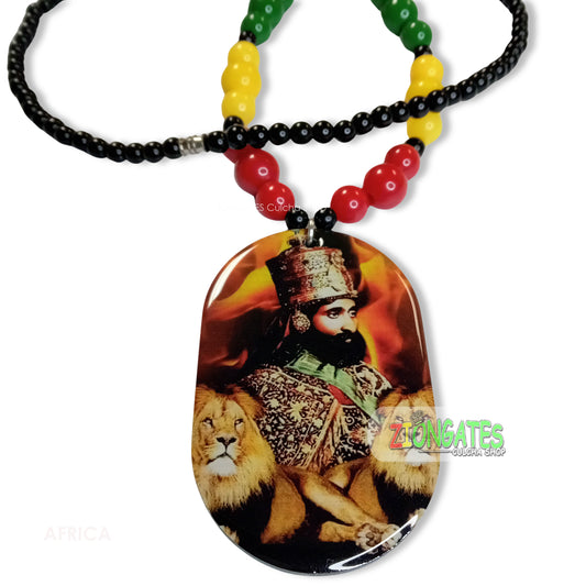 Haile Selassie Beaded Necklaces - Rasta - Red Yellow and Green - Large 3 inch