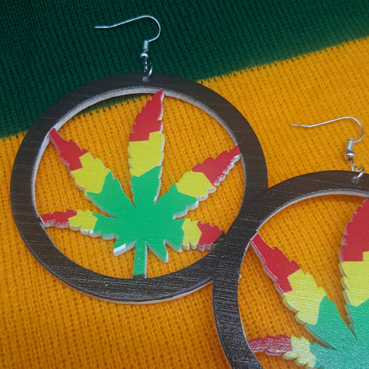 Ganja Leaf wooden earrings - 420 - Rasta