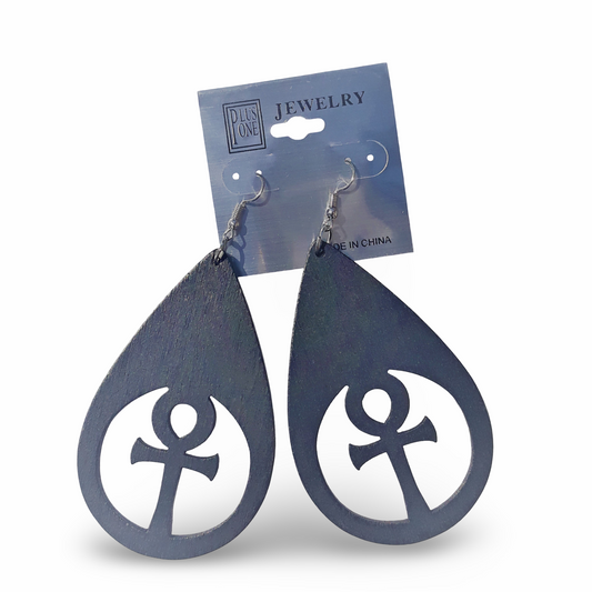 ANKH TEAR Drop Wooden Earrings - Afrocentric Earrings - Black - Brown