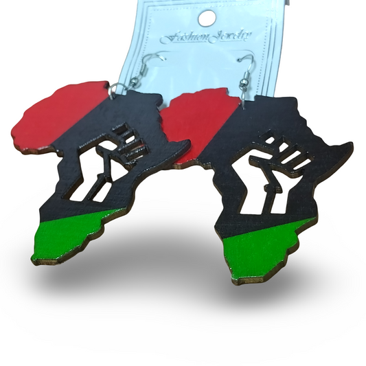 Africa wooden earrings with Fist - Rasta - Red Black and Green