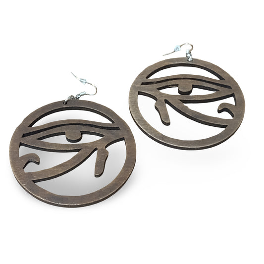 EYE OF HORUS Wood Earrings Round - Black - Brown