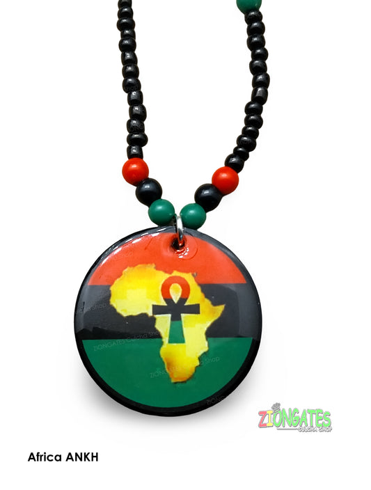 Red Black Green Beaded Necklaces - Pan African - Ankh - Africa Fist-RBG