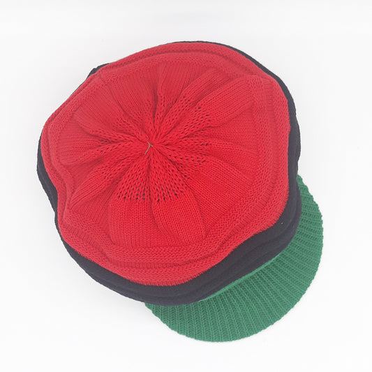 RH018-RBG Small Red Black Green Rasta Hat - Pan African - Beanie Visor