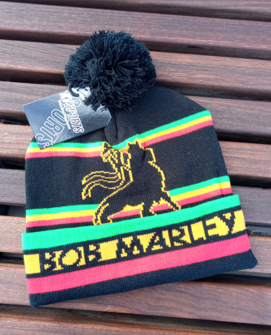 Lion of Judah Bob Marley One Love Pom Pom Ski Hat Black