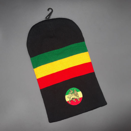 Tall Rasta Ski Hat with Embroidered Patch - Winter Scully - Red Yellow and Green