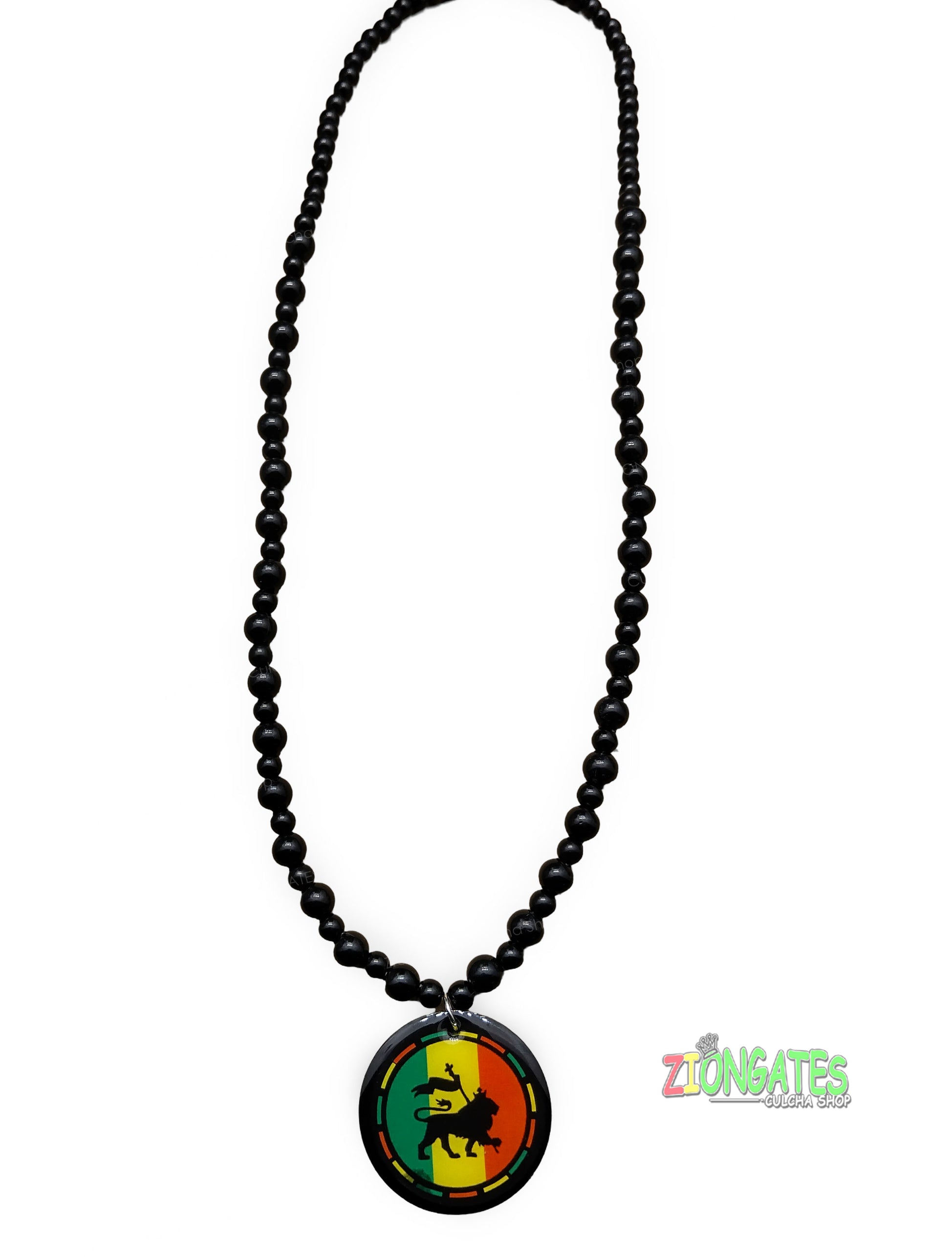 Lion of Judah Rasta Necklace with black beaded chain - LNE-15B